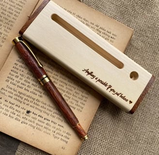 Timeless Rosewood Pens: Experience the luxury of our engraved rosewood pens, paired with premium wooden cases for a sophisticated writing journey